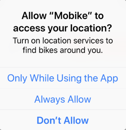 App would like to access your locations / app would like to access your contacts / app would like to access your camera